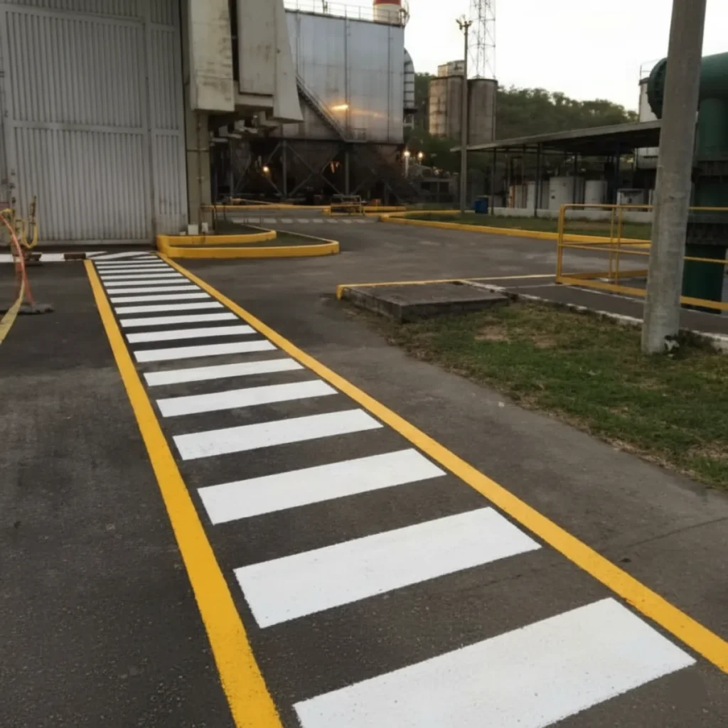 Prestamos servicios de demarcación vial interna, externa y señalización industrial para mejorar el orden, seguridad y eficiencia operativa en empresas e industrias.